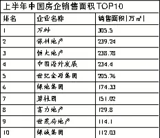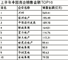 万科、保利领军全国销售排行榜