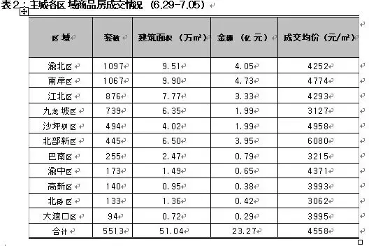 根据重庆中原地产市场研究部《一周楼市快报》统计: