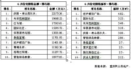 2009年6月,重庆主城区商品房成交均价为4250元/平方米,每平方米较上月下降71元,环比跌幅1.64%,与去年同期基本持平。重庆主城区商品房成交均价连续三月保持在4200元/平方米以上,6月在庆隆•南山高尔夫、光华观府国际、