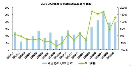 2009年6月,重庆主城区商品房共成交195.54万平方米(21212套),与上月基本持平;较去年同期增加了110.48万平方米,同比大幅增长129.88%。6月本为传统淡季,但市场需求旺盛,商品房成交套数超过了2万套,较去年同期增长一倍以上,随着通胀出现预期以及房价进一步上涨预期,投资性购房增多。