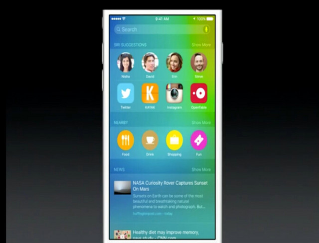 iOS 9 让你能搜索赛事日程、Netflix 影片、app 内信息等更多内容。