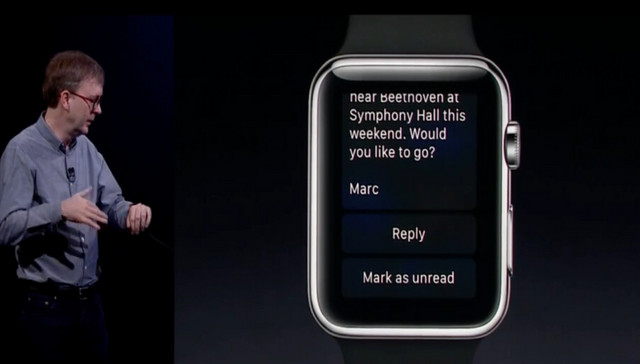 开始演示watchOS了,直接用SIRI来回复邮件。