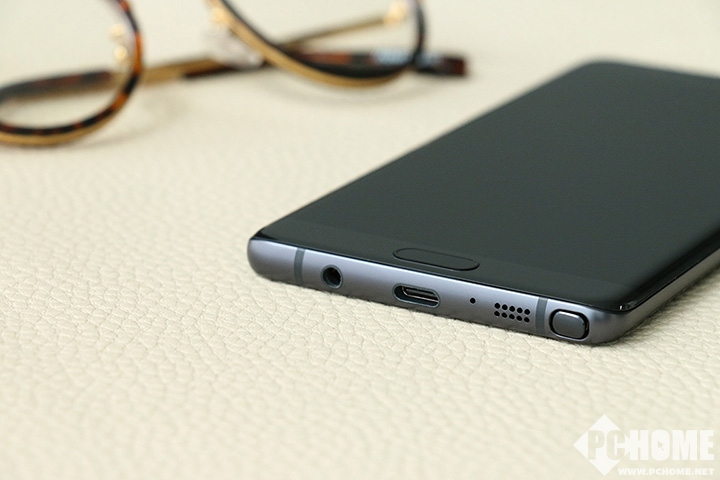 SIM卡插槽被放在了顶部,这里对于机身美观的影响最小。而Note7的主要接口,都被放在了底部,这里看上去就比较对称了,首次在三星手机上出现的USB Type-C接口居中,3.5mm耳机接口与扬声器开口分列两侧,天线隔离带有着些许的装饰作用,放在这里也是三星的一贯做法了,毕竟平时使用的时候看不到,不影响感观。
