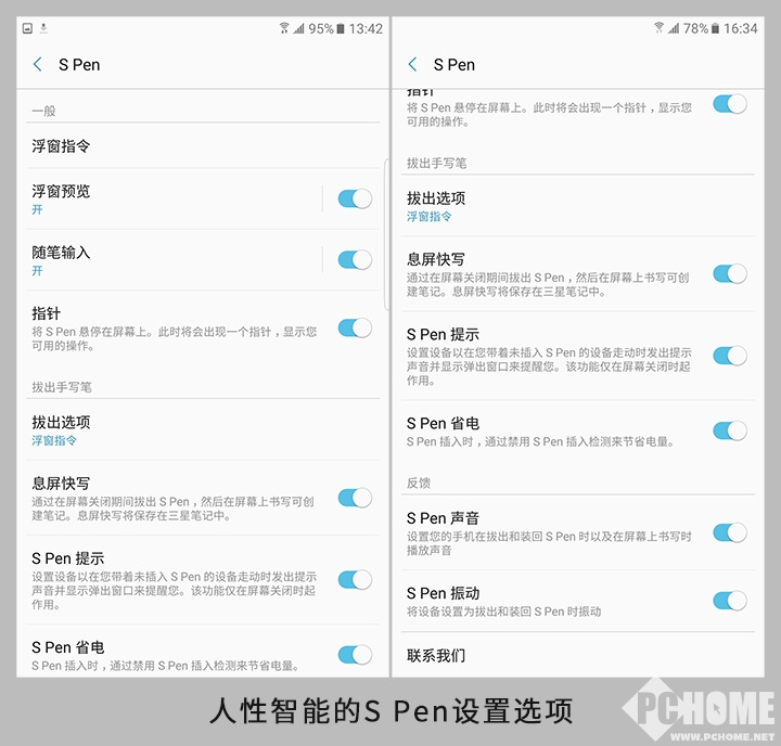 系统设置将每一个选项都设置成了开关,需要那个就开启那个,清晰直观并且可以调节的功能非常全面,足以体现出三星对于这跟笔的重视程度。