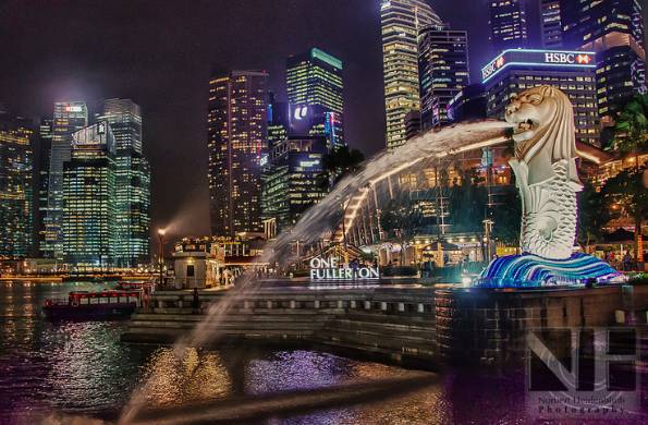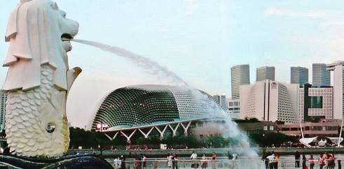 这里是新加坡的标志性景点之一,代表着新加坡的形象的鱼尾狮喷出水柱,最后汇入新加坡河,很多游客都会和巨型鱼尾狮合影留念,而最出名的当然就是和鱼尾狮拍下一张恶搞照啦!