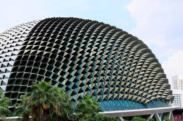 滨海艺术中心是新加坡最具有现代特色的建筑之一,最有特色的当属它“大榴莲”的外观,圆顶的造型十分独特,夜幕降临时圆顶会被点亮,夜景是新加坡最美夜景之一,建议晚上来看,赶上音乐节时,滨海艺术中心里还会有免费的演出,欣赏完夜景再看一场演出,完美!
