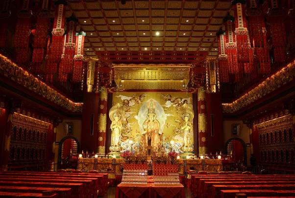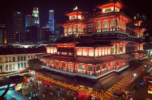 这座中国唐朝时期建筑风格的寺庙位于牛车水区,得名于“佛牙舍利”,而佛牙舍利就被放置在巨大黄金佛塔之中,因此游客只能在公众区域参观,只有僧侣才能进入佛牙舍利间。寺庙还有一个屋顶花园,如果逛累了,可以在花园中休息片刻,享受一下宗教圣地带来的宁静。