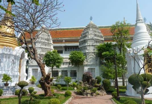 金山寺位于曼谷的旧城区,比起大皇宫和卧佛寺的游客来说,这里的游客比较少,攀登上300多节台阶之后,就可以在塔顶一览旧城区的景色,台阶旁的树木、雕塑、水景都很美,而且因为有树有水,即使是炎炎夏日去攀登也不会感觉太热,如果傍晚去的话,在灯光照耀下的金山寺更显得金碧辉煌。门票只需要10铢,约人民币2元左右,就可以看到游客少、清净、景色美的金山寺了。
