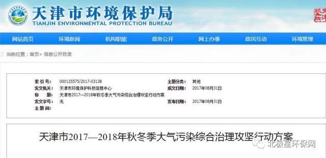 天津市2017—2018年秋冬季大气污染综合治理攻坚行动方案