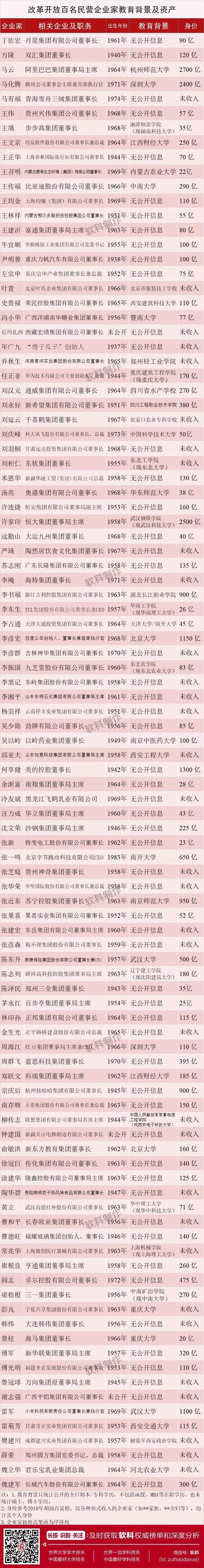 百名企业家教育背景汇总