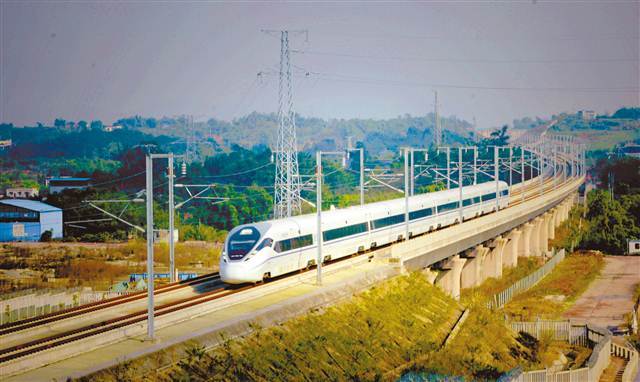 重庆璧山区丁家镇,高铁列车高速奔驰。 记者 万难 摄
