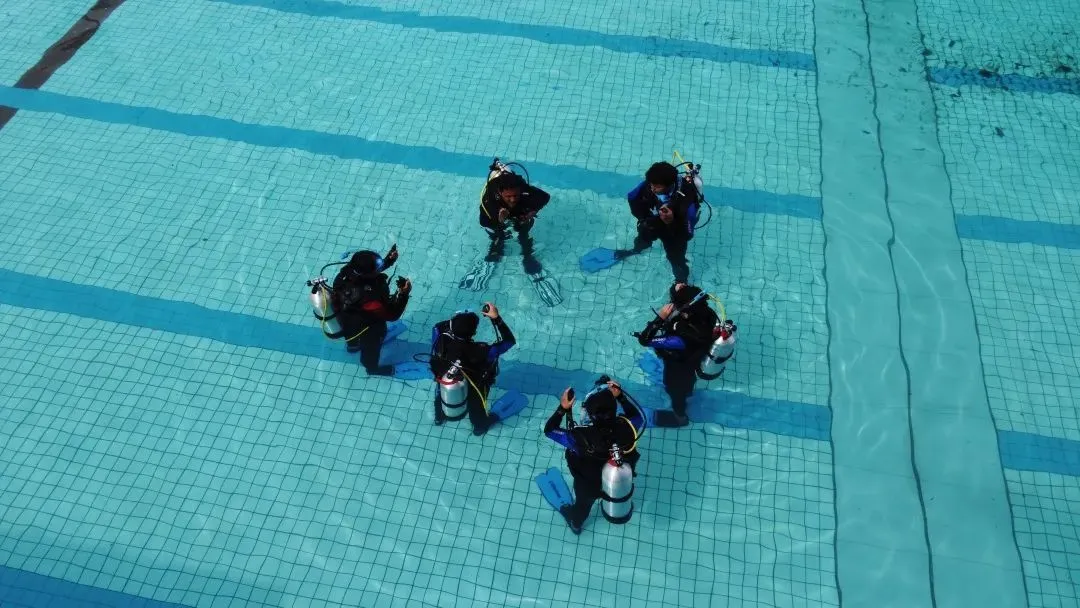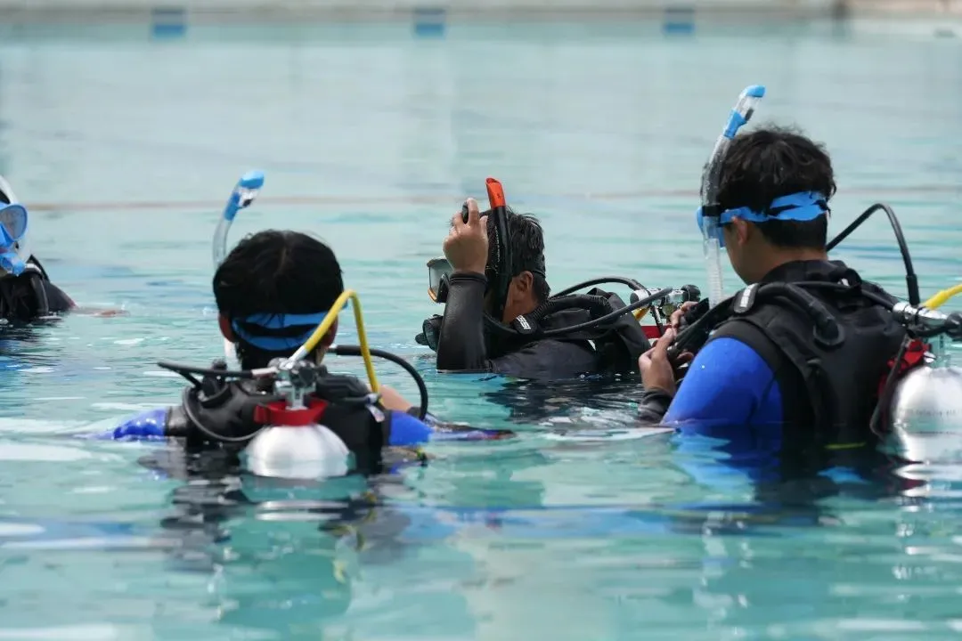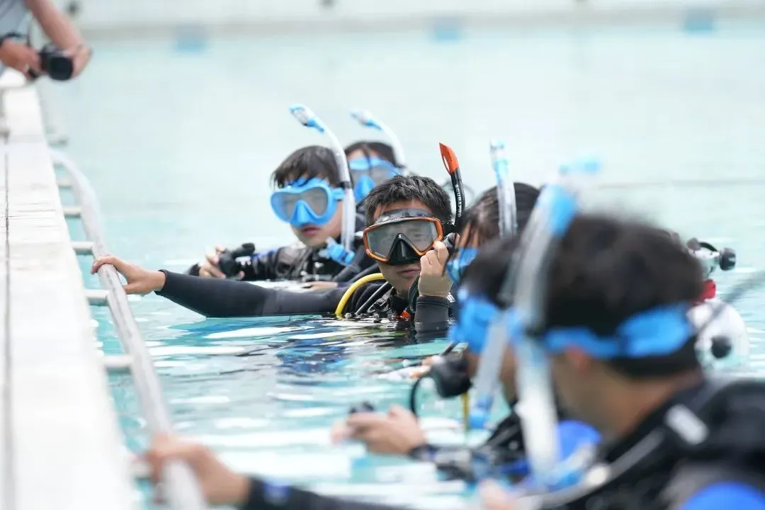 据澎湃新闻报道 潜水课分理论和实践两部分 前半学期以理论课为主 后半学期以实践课为主 选修的学生必须会游泳 面镜、呼吸管、气瓶、 浮力调整装置、配重带、 湿衣、脚蹼…… 一身完整的潜水装备近五十斤重 价格要3000多元 设备统一由学校提供