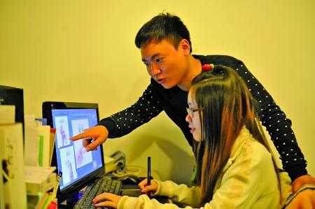 曾丹麒和聂小涵在讨论构思