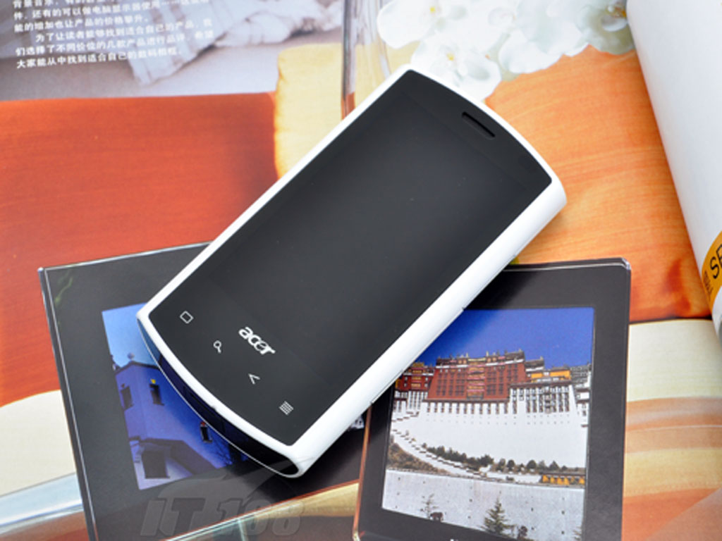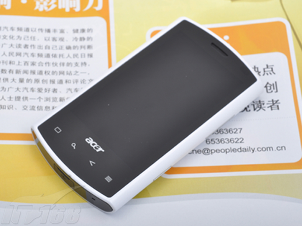 Acer S100采用了黑白搭配的外观设计,正面是一块经过抛光处理的3.5英寸电容触摸屏,不过小编觉得使用这机子的朋友肯定要爱干净的,因为此机指纹问题依然还是很严重,或者这就是有得必有失吧。S100机身周围和机身背后则是采用了雪白色外壳,显得格外醒目,整机三围:115*62.5*12.5mm加上135g的机身体重,这样的尺寸女生来说会有点过大。