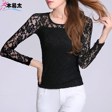 蕾丝打底衫木易太2014秋冬新款韩版大码女装上衣t恤长袖蕾丝衫女,优惠活动折扣价格:49.00元