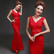 [服装饰品内衣] 婚纱礼服新娘礼服敬酒服新款2014晚礼服长款结婚修身鱼尾红色双肩 阳光美衣 韩版女装 |
