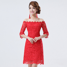[服装饰品内衣] 典恒新娘2014时尚新款婚纱礼服中袖绑带红色蕾丝新娘敬酒服送耳环 阳光美衣 阳光美女 |