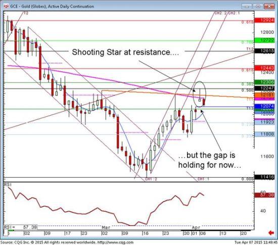 FuturesTechs分析师Clive Lambert认为,在金价走高时将是卖盘机会,而1207.4美元/盎司的水平是关键水平。1207.4美元/盎司是上周四的高点,而在本周一,受到非农数据的推动,金价触及了1224.5美元/盎司的7周高点。但随后金价回落,形成射击之星形态。有关理财的新闻
