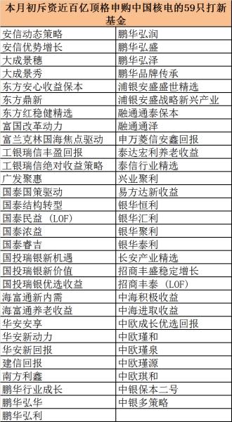 那么,现在哪些打新基金规模较大呢?由于二季度以来发行打新基金数量较多,而且不少打新基金规模增长很快,投资者无法根据一季末规模来判断打新基金当前规模大小。不过,由于中国核电和国泰君安发行时间间隔较短,投资者可以重点关注那些斥资近百亿元顶格申购中国核电的打新基金,这些基金相对来说规模较大,入围国泰君安网下发行可能性更大。