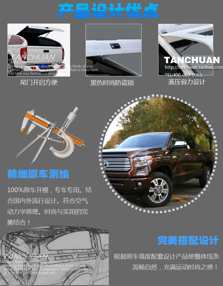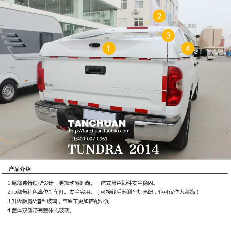 【产品名称】:14款丰田坦途皮卡车后箱斜盖(PUCKUP CANOPY)  仅适用于2014款坦途)
