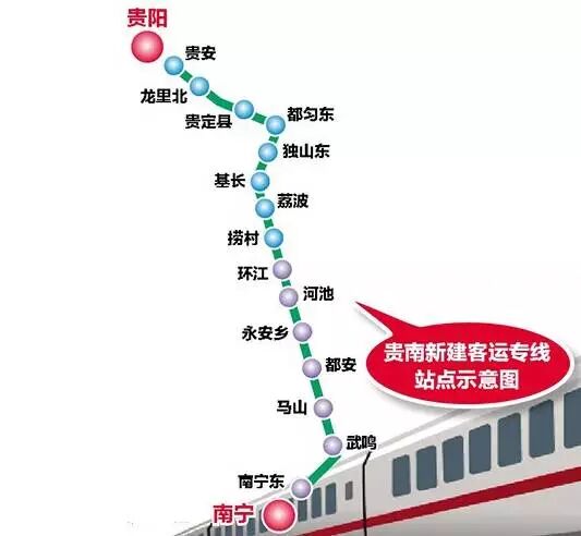 2016年12月29日,贵南高铁(贵阳至南宁)高速铁路在广西壮族自治区都安县举行开工仪式。该铁路全长 482. 公里,预计2022年建成通车。据了解,目前贵南高铁荔波段将于本月底全面进入施工建设。建成后,从贵阳至荔波只需 40 分钟,至南宁只需 2 个小时以内。