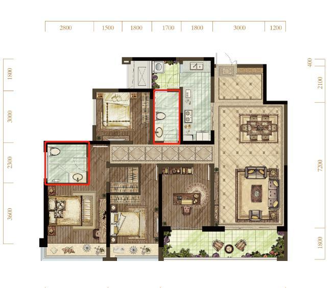 宽敞的双明卫,主卫、客卫功能齐全,兼顾明亮与整洁,每一天都从贴心舒适的起居生活开始。在阳光明媚中,与爱人对镜相视一笑,开启晨间洗漱,提升浪漫甜蜜感。即使在冬天,一系列的智能家居随时守护你与家人的温暖。