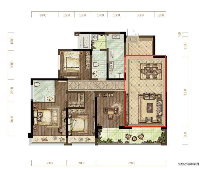 四室两厅两卫的空间布局,客厅餐厅形成一个大通厅,尽显南北通透的方正格局,充分满足了三口之家、三代同堂和“二胎时代”所需,为你实现理想之家的全部向往。