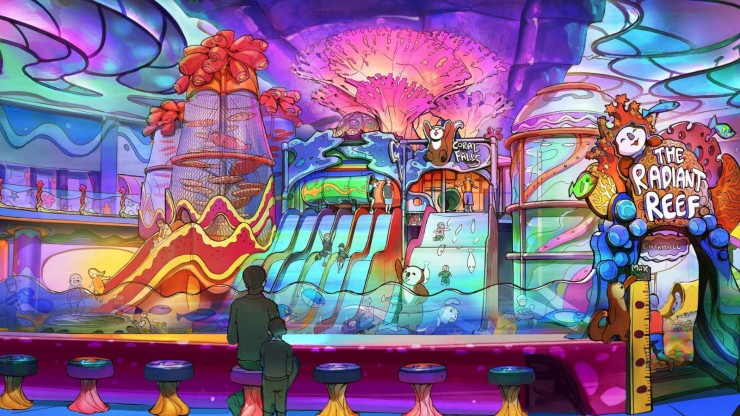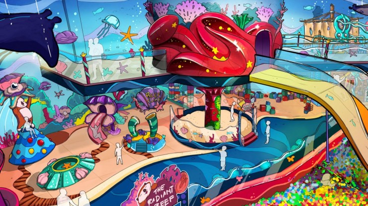 飞船一落地,映入眼帘的便是 蓝白相间,尖塔高耸 像是属于童话世界里的城堡 它美貌与才华并存,集情景+体验于一身 它就是约1700㎡儿童反斗城 内部配备奇趣万花筒、儿童蹦床等游乐设备 提供不同属性的惊喜趣味 [效果图]