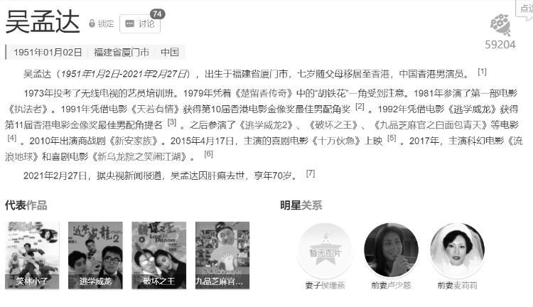 作为香港电影时代的黄金配角,无数影迷最难忘的黄金搭档之一,吴孟达身患肝癌,因病去世,尽管不愿面对,但不得不承认,一个时代,正在渐渐远去。 去年年底,吴孟达在出席活动过程中因身体不适而前往医院就医,没多久,令人惋惜的诊断公开,70岁高龄的吴孟达已经身患癌症,短短几个月的时间,癌症就侵蚀了这位曾经盛极一时的演员,最终,风烛残年的他没有战胜病魔,终结了一代人的青春。 而让无数影迷意难平的达星组合,就这样自2001年的《少林足球》后,再也没有一同出现在大荧幕上,世事唏嘘,从来就没有那么多大团圆结局。 随着达叔的离世,一代人开始感受到黄金盛世的离去,那些曾经活跃在香港影坛的熟面孔,正在一个接一个的远去。 1951年出生的达叔,七十年的人生中几经跌宕起伏,年少成名,却堕入名利场,酗酒、****恶习缠身,爆红积累下来的资本,在短时间内挥霍一空,面临破产的他几度找到好友相助,可是为了让他能够重振人生,好友纷纷拒绝。 无奈之下,他只得重新开始思考人生,重新踏上拼搏的路,经历过这样的人生波折,重回大众视野的达叔一改昔日浪子作风,潜心钻研演戏,后又碰到了人生中举足轻重的黄金搭档,周星驰,开始一段让无数影迷刻骨铭心的风光年代。 后来的人生中,达叔走得安稳,直到晚年,虽然高龄,但依然有不少活动在进行,所以达叔的晚年尚算安稳,故人已逝,愿天堂也有喜剧。 相比起达叔,很多人并没有这么幸运了,他们也曾经历香港电影的黄金时代,留下太多耳熟能详的角色,但晚年凄凉,无比唏嘘。 曾与达叔星爷合作《九品芝麻官》的夏萍,于2019年去世,她在电影里的一句经典台词“这把尚方宝剑,上斩昏君,下斩馋臣”是多少人的电影记忆,那条咸鱼,曾经打动过多少被生活折磨的咸鱼。 早年成名的夏萍有“香港赫本”的美称,从年少到年长,塑造了许多让人难忘的美丽角色。 可是夏萍的一生却并没有那么幸福圆满,两段婚姻都没有一个白头到老的善终,第一段婚姻因为夫妻二人不和而结束,正在事业上升期的夏萍与子女聚少离多,关系僵化,第二段感情虽然甜蜜,但丈夫早亡,她依然是长期独居。 直到2015年,夏萍独自在家,晕倒都无人知晓,被友人救起后前往老人院长住,而前夫的儿子女儿表现漠然,直到后来老人多病齐发,憔悴离世,也只有干儿子林家栋陪伴左右,风光一生,寥落一时。 提到香港电影黄金年代,有很多反派角色给人留下了深刻印象。 作为年少接触古惑仔电影的一批影迷,很多人对成奎安和李兆基一直傻傻分不清楚。两个人相似的气质面相,相似的戏路,相似的角色塑造,都让很多影迷奉为经典“绿叶”,而这二人的晚年,也同样凄楚。 香港影视行业的低回报,是很多配角无法安度晚年的一大原因,年轻时仗着风光无限,肆意挥霍,不好好经营家庭和人生,最终年老体衰,也无力回天。 李兆基就是这样的一位,年轻时没有好好经营积累,导致晚年穷困潦倒,再加上疾病缠身,肝癌肆虐,最后只有相恋多年的女友相濡以沫的陪伴左右。 成奎安也同样的,巅峰时期可以年入百万,但由简入奢易,由奢入简难,早年间留下的挥霍习惯导致最终的生活难以应对。 尽管早年作为金牌配角,风光无限,但后来香港电影日渐没落,除了真正的大牌主演,很多配角龙套都一落千丈,挥霍导致家庭生活维系艰难,他的晚年,“灯光昏暗,异常清冷”,最终,这样一位在作品里杀伐果断的黑帮太岁,也被癌症无情的夺走了生命。 另外一位晚年落寞的则是在古仔版《神雕侠侣》中出演金轮法王的刘家辉,他的金轮法王在那一版《神雕侠侣》中格外出彩,成为一代人的童年记忆,在《唐伯虎点秋香》里,他饰演的夺命书生与夫人郑佩佩有大量的对手打戏,至今都为人津津乐道。 这样风光的刘家辉,晚年却格外苍凉,刘家辉一生也有过两段婚姻,第一段感情结束后,前妻带着一子一女飞往美国。 而第二任妻子,也育有一子一女,直到2011年,刘家辉因中风而下身瘫痪,第二任妻子则带着孩子回来争夺家产,迫不得已,为了躲避前妻的骚扰,刘家辉选择到养老院养病,可是家人背叛,病痛折磨,日渐消瘦的刘家辉被命运玩弄彻底,从此淡出了大荧幕。 回顾香港游戏圈,仿佛陷入了癌症和病痛的魔咒,不只以上几位晚年凄惨,最近刚刚宣布复出的陈惠敏,已经76岁高龄,也正饱受癌症折磨。 愿香港游戏圈少一点病痛折磨,愿那些辉煌,那个时代,再多留一段时间。
