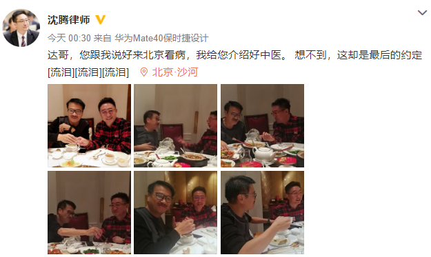 2月27日,“黄金配角”吴孟达因肝癌去世,终年70岁。消息曝光后,不少圈内艺人纷纷发文哀悼表不舍,他的离去仿佛让80、90后的小伙伴失去了童年,对他是那样的记忆犹新,也是那样的难以接受。 吴孟达去世前,其现任太太及子女都来到医院陪伴他走完最后一程,去世后媒体也拍摄到太太及孩子的照片,儿子吴韦仑被问及关于父亲去世的更多事情时一直保持沉默,但能够感受到他的难过,手中还拿着一盒纸巾,太太戴着口罩和帽子,神情也是十分悲伤。 另外在吴孟达去世后,圈外好友也纷纷发文悼念他,其中一位叫刘玉香的好友公开了吴孟达送来的新婚祝福,她称呼吴孟达为达哥,透露吴孟达私下非常豁达、幽默、也很开朗,像大哥更像是长辈,每次聚会吴孟达都非常热情的招待,也透露是她和她家先生的感情见证,因为特殊时期无法送他最后一程,只能在远方为达哥祈祷,一路走好。 在视频祝福中,吴孟达亲切称呼她是弟妹,而表弟名叫沈腾,表示没想到两人不动声色就收成了正果,老哥哥在这里衷心祝福你们白头到老,永远开心,永远幸福,还在视频的最后给两人比心直言“爱你”。 虽然吴孟达没有亲临婚礼现场,但送来了祝福也能够看出彼此的关系很不错,另外有网友发现细节,这位刘玉香好友的结婚日期是2021年1月9日,她婚礼现场海燕和乌兰托娅还亲自到现场为其演唱和表演喜剧,也就是说吴孟达送出新婚祝福的日期是2021年1月9日左右,这应该是他生前最后一次公开露面了。 两人结婚时吴孟达的状态还很不错,那时的他已经做完肝癌手术,和好友田启文之前透露的那样,术后恢复得不错,只是没想到那么快就离开了,确实让很多朋友都难以接受,当达叔离开后再看到他生前那么乐观的画面时,真是让人忍不住泪奔。 这位刘玉香好友的老公沈腾律师在吴孟达去世后,也晒出了合影为其缅怀,他透露吴孟达患癌症后曾约好来北京看病,还打算采用中医治疗,只是没想到,这却成了最后的约定。 在晒出的合影中可以看到,达叔的身形已经很消瘦了,另外仔细看,两人在饭桌上吃饭畅聊,吴孟达还端着酒杯畅饮,想必之前说好的戒烟戒酒,最终喝酒的习惯还是没有戒掉。 而且从达叔脸上的红晕可以感受到,此次聚会他似乎也喝了不少,曝光照片的好友脸色更红,或许不敌酒意,吴孟达最后还端起了水杯和朋友一起喝。 这对夫妻在吴孟达患肝癌后,始终保持着联系,约定好一起来北京为其找中医专家治疗,或许也是没有想到吴孟达走得那么快,如今赶到特殊时期还无法前往送最后一程,也是令人悲痛。 早在2014年吴孟达的身体情况就已经很差了,曾在节目中透露自己的心脏出过问题,一度入院抢救,当时出院后也曾暴瘦了30斤,状态非常虚弱,到了2015年吴孟达因为身体原因暂别舞台,而后他开始尝试戒烟戒酒,还患上了糖尿病,这些年也一直饱受着病痛折磨,在与病魔斗争的期间他还在努力拍戏,真的非常敬业,也值得人们去缅怀,想念着他。希望另一个天堂中没有疾病,希望达叔一路走好!