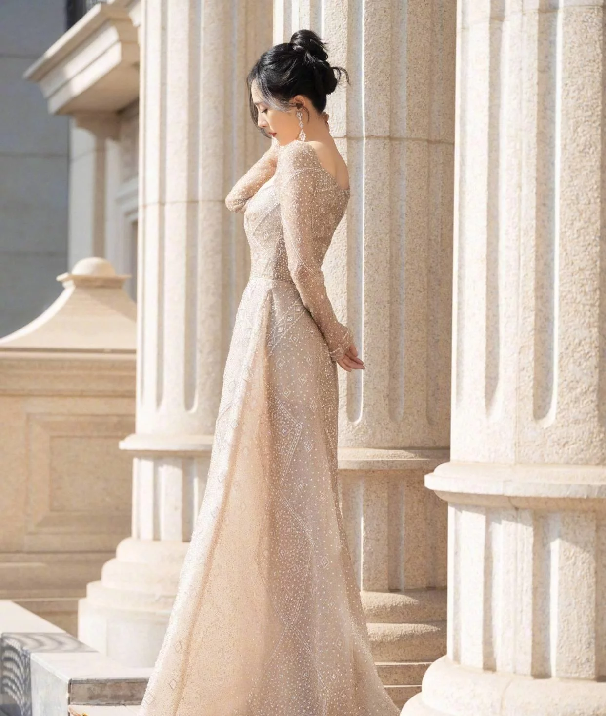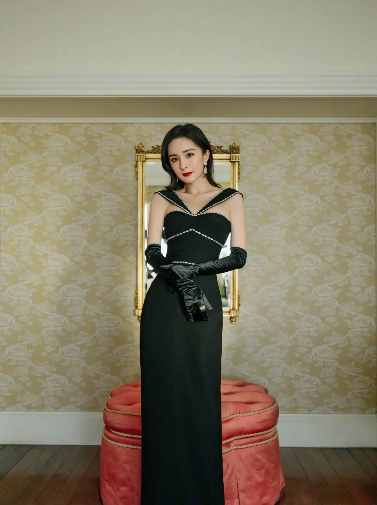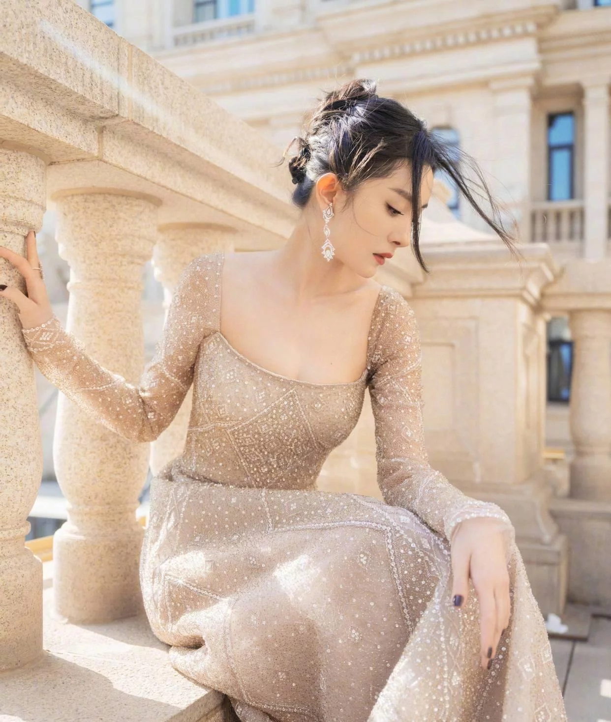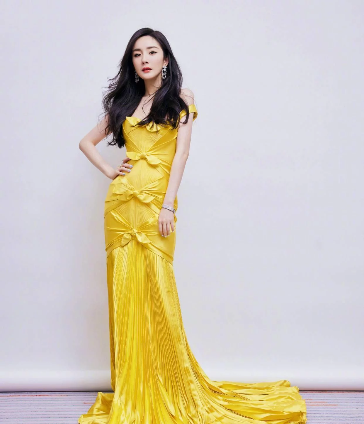 [八卦星闻] 杨幂国民“女神”,穿一袭香槟抹胸拖地裙,高级又优雅