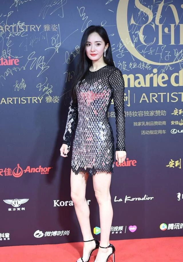 [八卦星闻] 杨幂真会撩人,穿渔网裙怕走光拼接亮片,意外显得新潮又高级