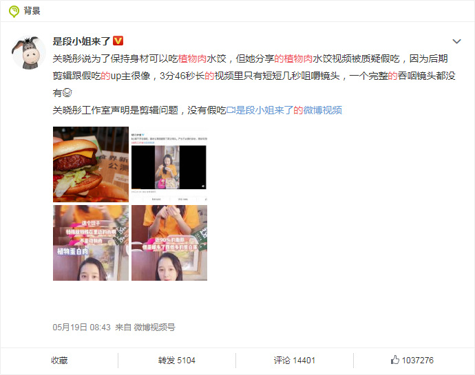 最近,关晓彤分享的植物肉水饺视频被质疑假吃的事情登上热搜。一些网友关注的点是关晓彤是否真的假吃,而另一部分关注的则是这种肉是否健康!