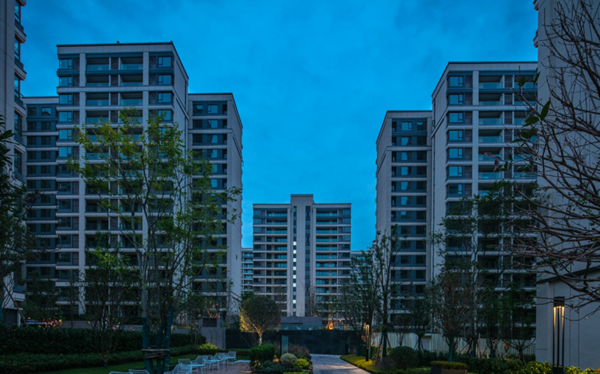 园区内,项目外立面是采用了大面积的玻璃;水元素,贯穿小区各处的景观主题,小区各处都能看到有专门设计的水景会客厅嵌入在小区其中:楼幢间距宽阔排布,保障每户的采光性和通风性;园林景观的每一处,在“水”与“绿意”交融之地,有不少潮水、波纹等元素穿插呼应。