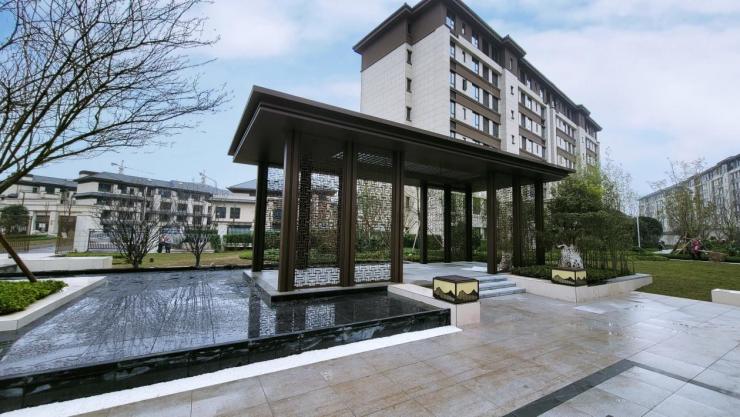 项目内花语主题园林打造,一步一景愉快归家。内外双重自然之境配套,居住于此,瞰醉美风景,享自在呼吸。(配樱花里社区实景图)