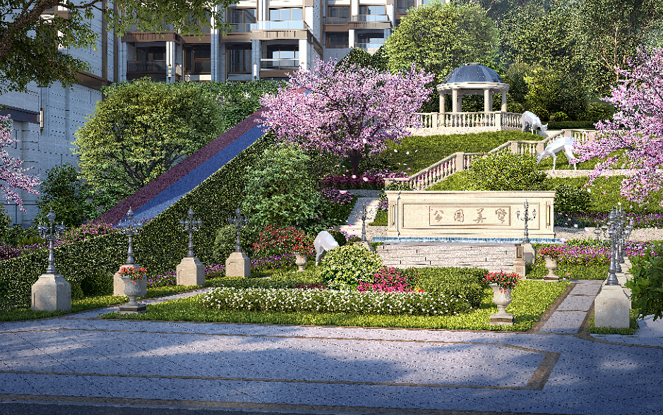 步入南方公园美墅,这一城市核芯花园叠墅,草地葱郁,花园嫣然。